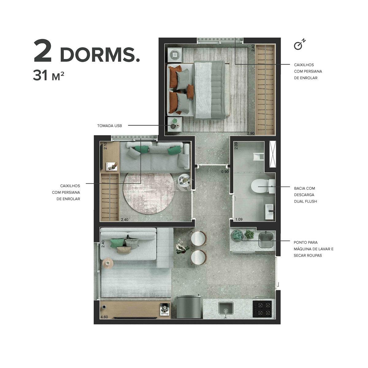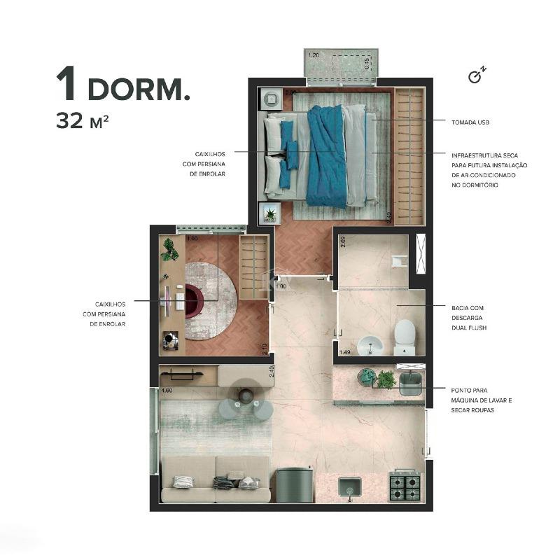 Apartamento 2 Dormitórios com Suíte e 1 Vaga • Frente em Parati, São Carlos